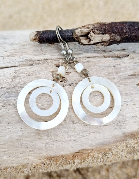Earrings Shell Dangling Circles 52a