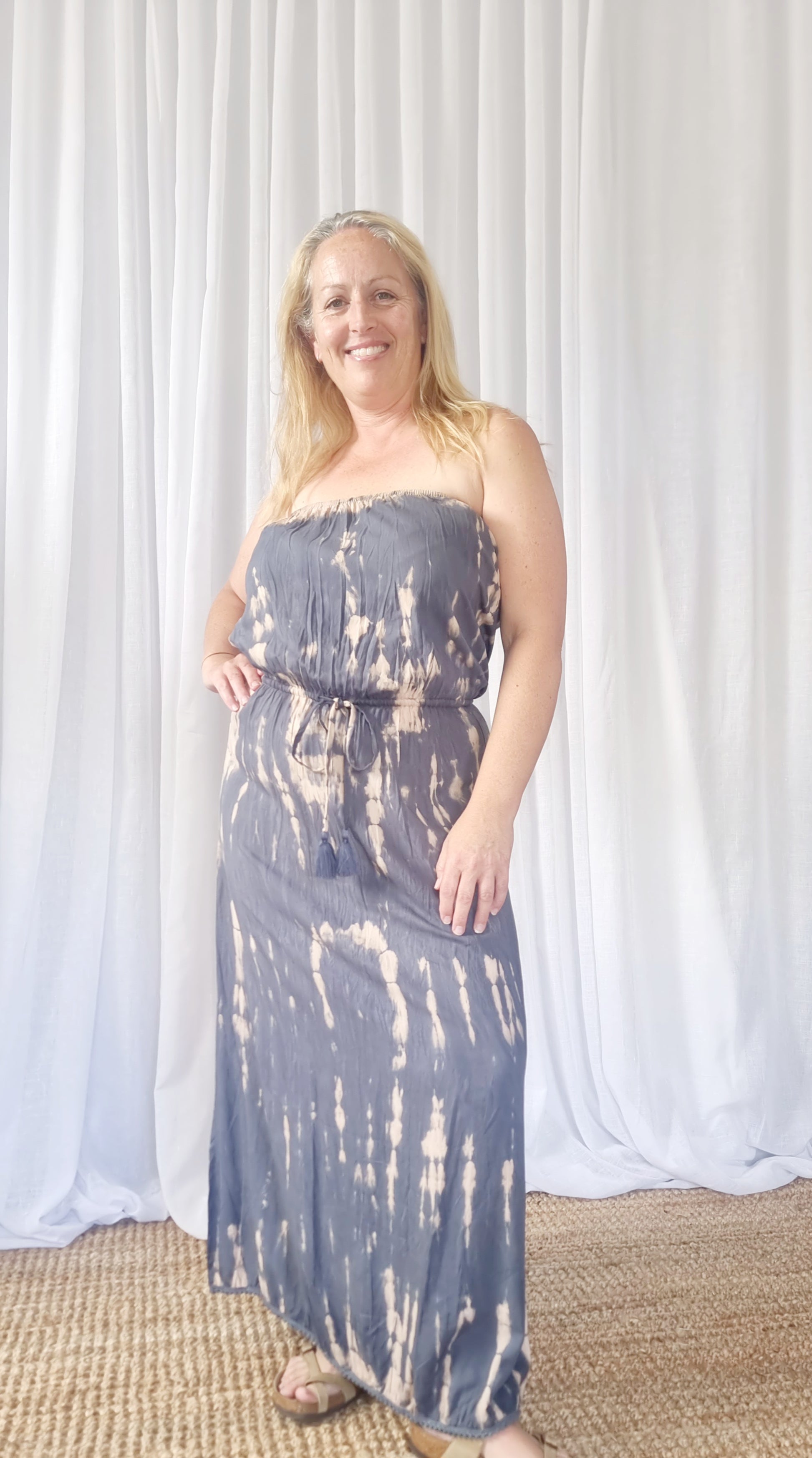 Our Honey Dresses are long, straight and accentuate those gorgeous womanly curves, with its drawstring waist.