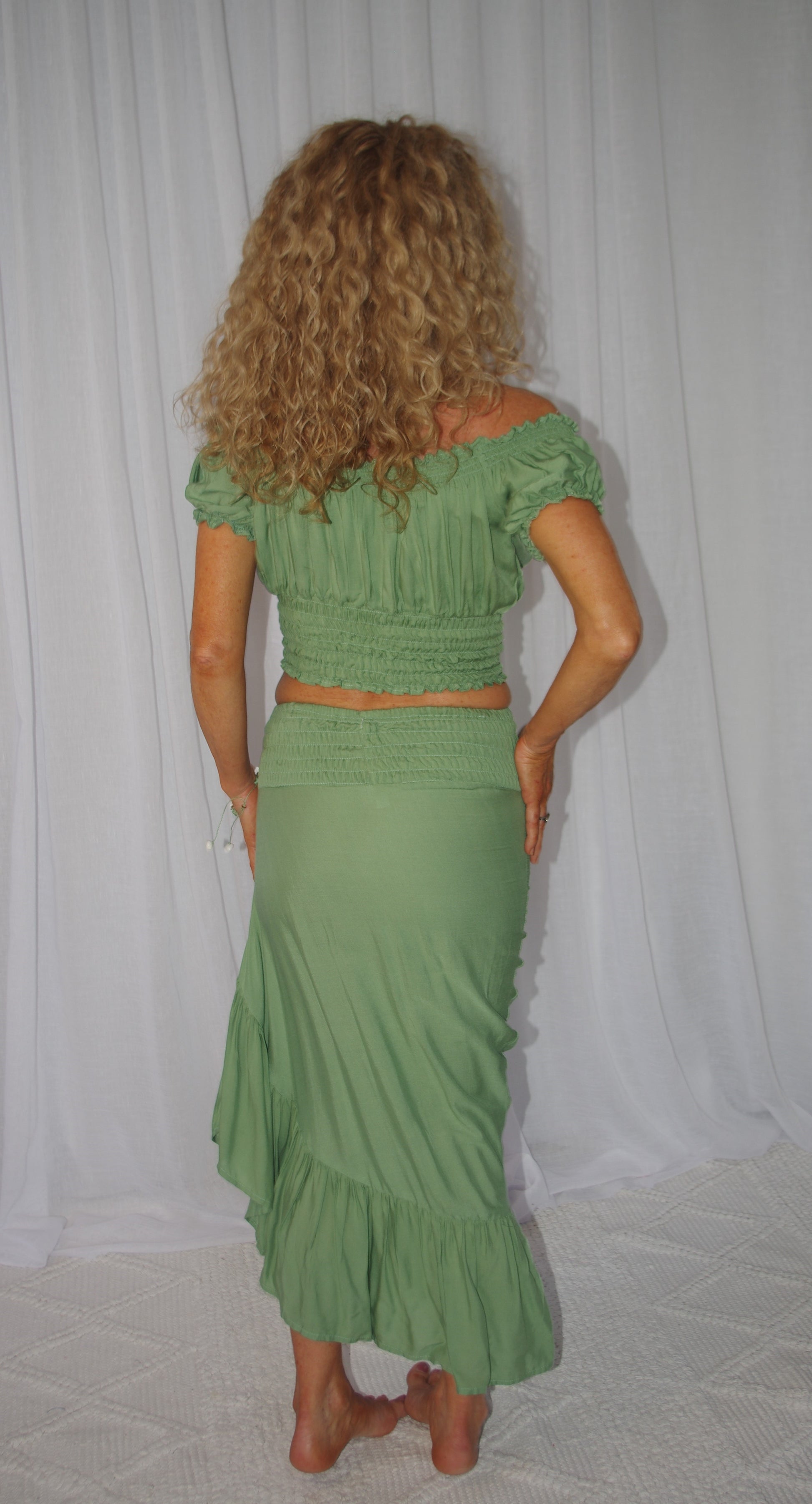 One Size fits girl's/ladies' size 6 to 8 only. These sets look amazing on teens as you can see in the photos and ladies up to which ever age, they fit. The model in Olive is 49yrs old and we have had ladies in there 60's purchase this skirt.