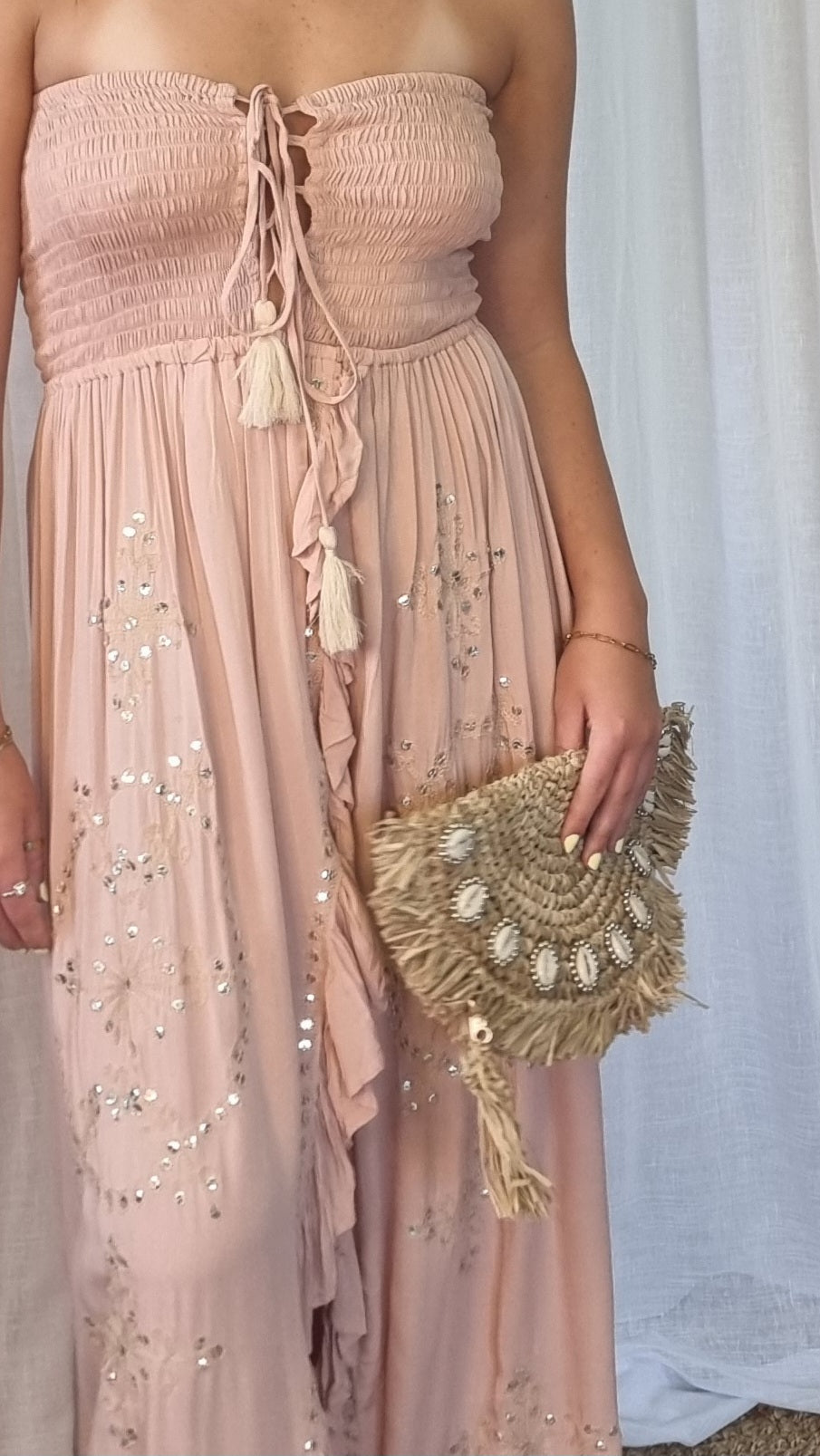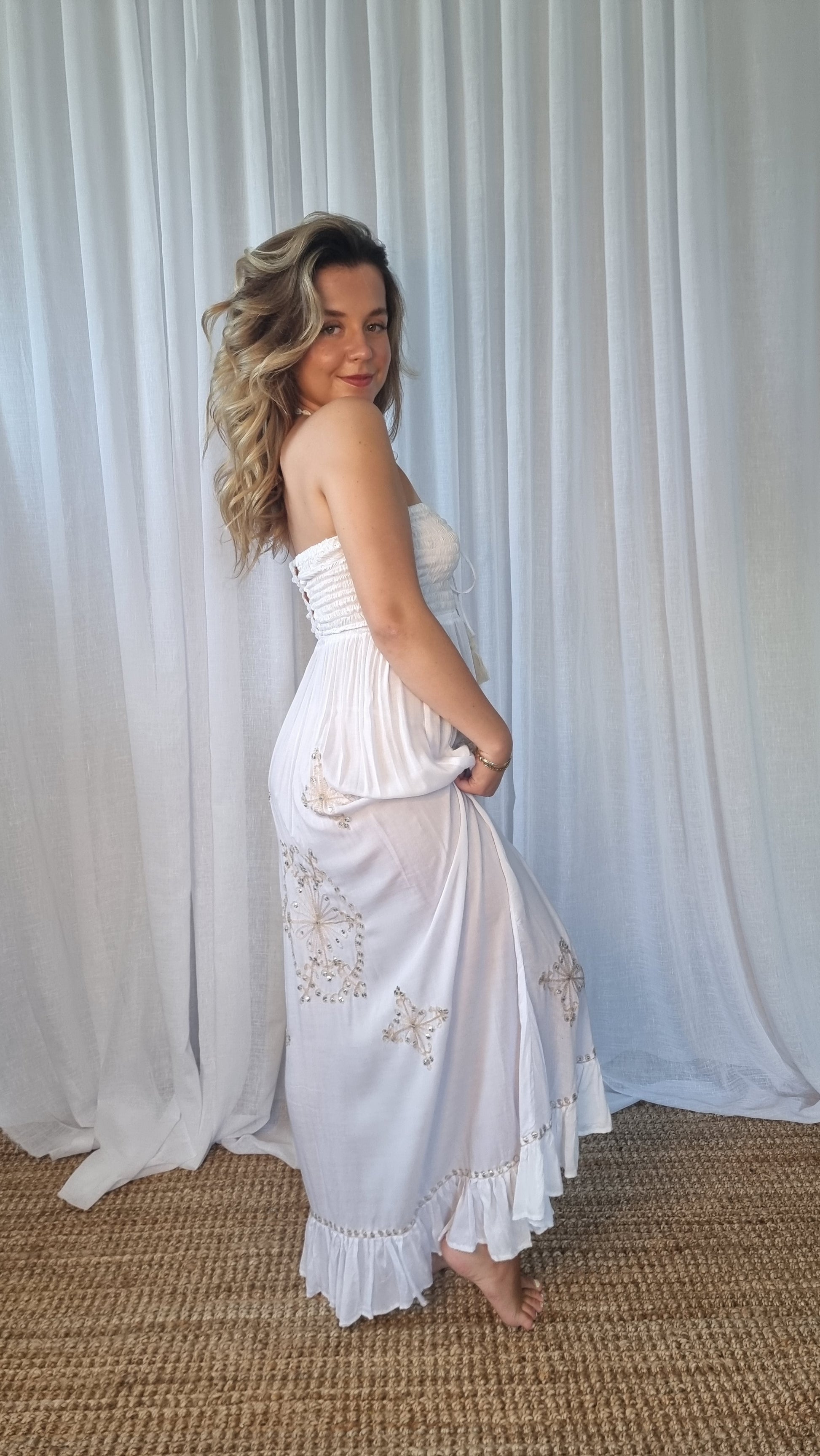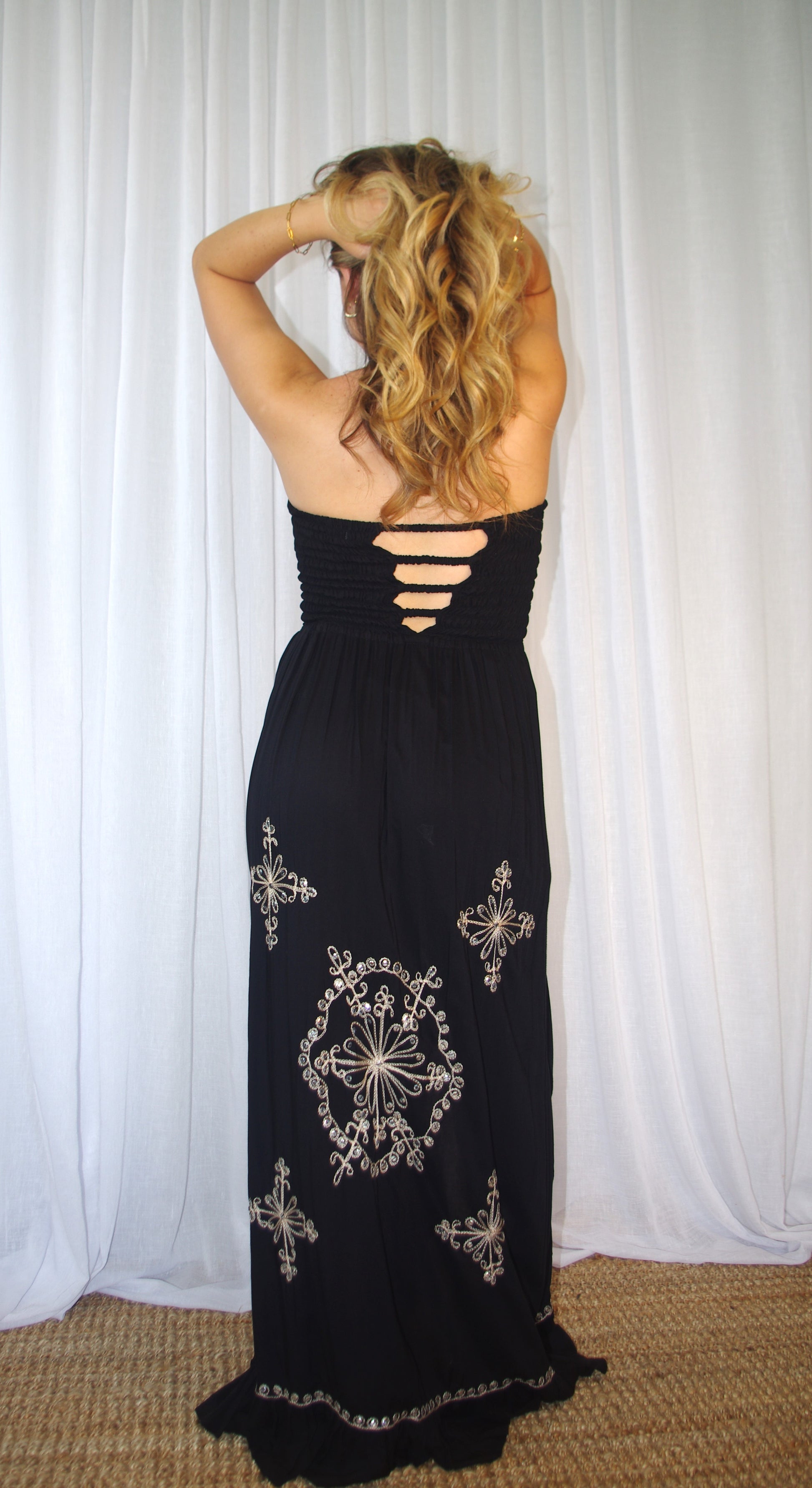Our Maxi Destiny is handmade, with hand stitched sequence, sewing and embroidery, taking hours to complete one dress.