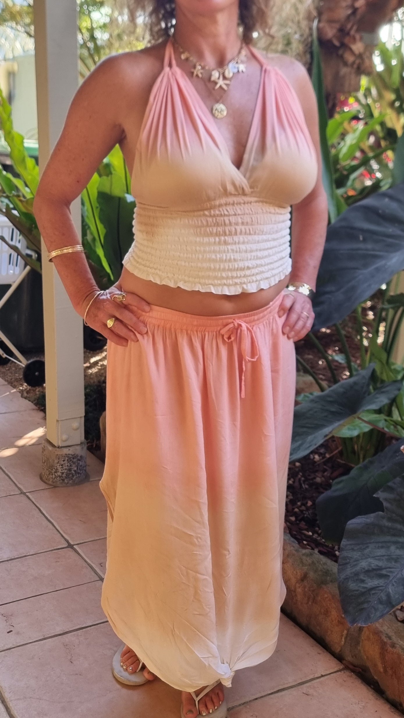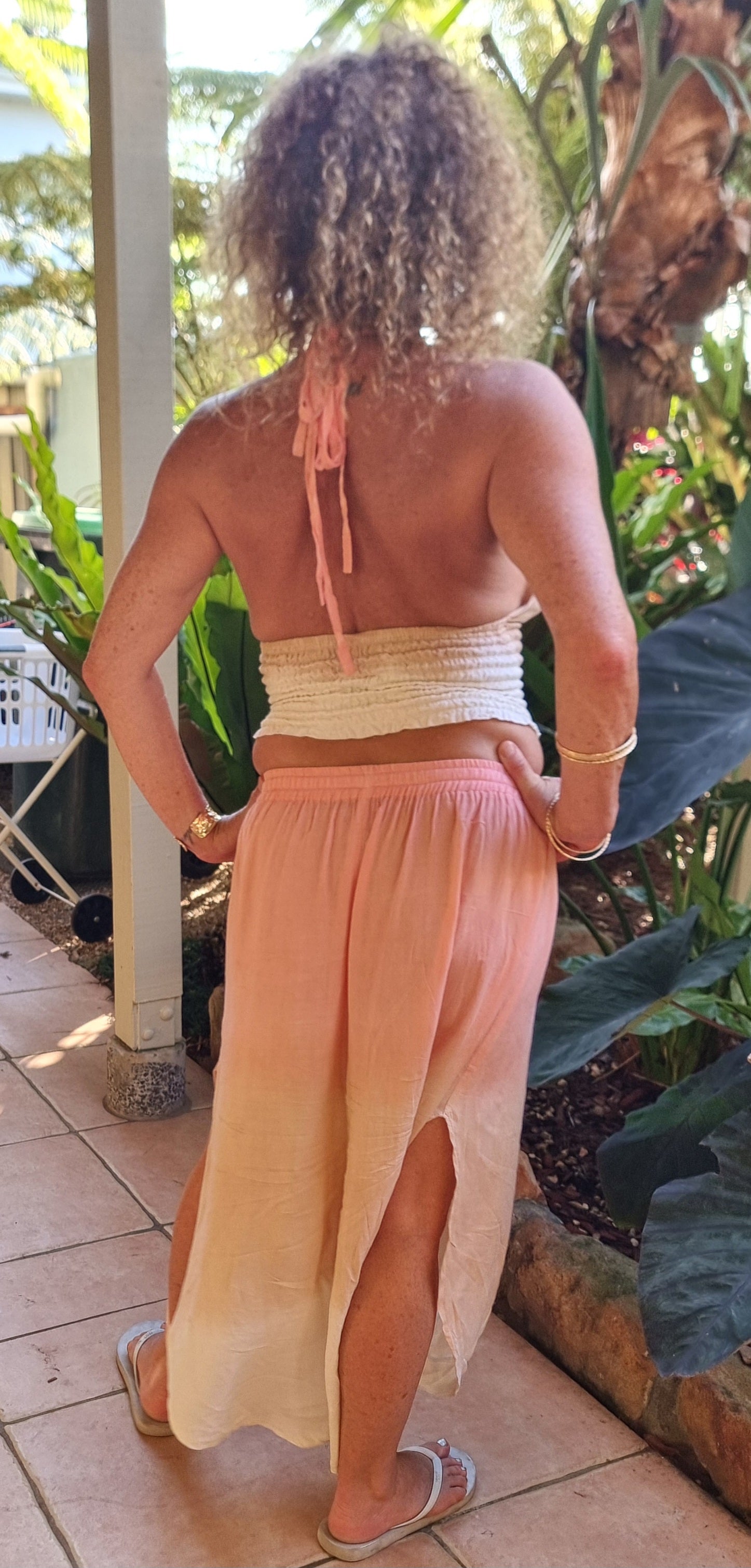 Our Tie-Dye Mermaid Set is made for sun-kissed days and salty air. The halter style crop ties up at the back of the neck and features and elasticated upper torso for a comfortable, flattering fit. The matching skirt sits effortlessly on the waist with elastic and an adjustable drawstring, finished with flowing splits that mover with you.