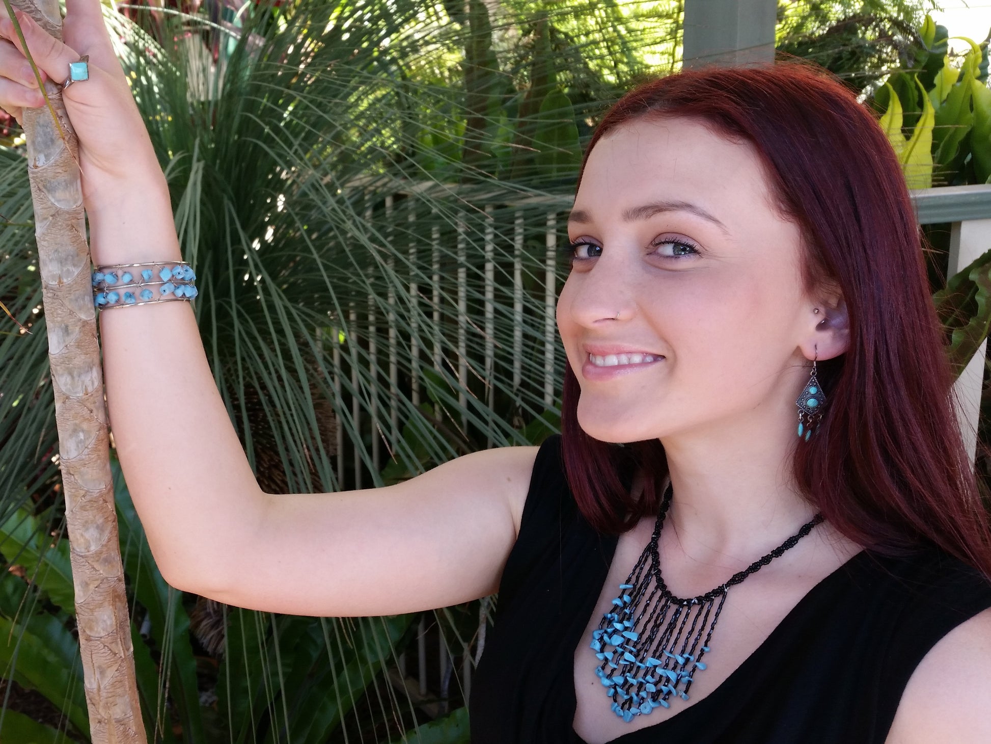 - Black Bead and Turquoise strands on a black twisted bead chain, with fishing line and cotton thread with a lobster clasp closure.