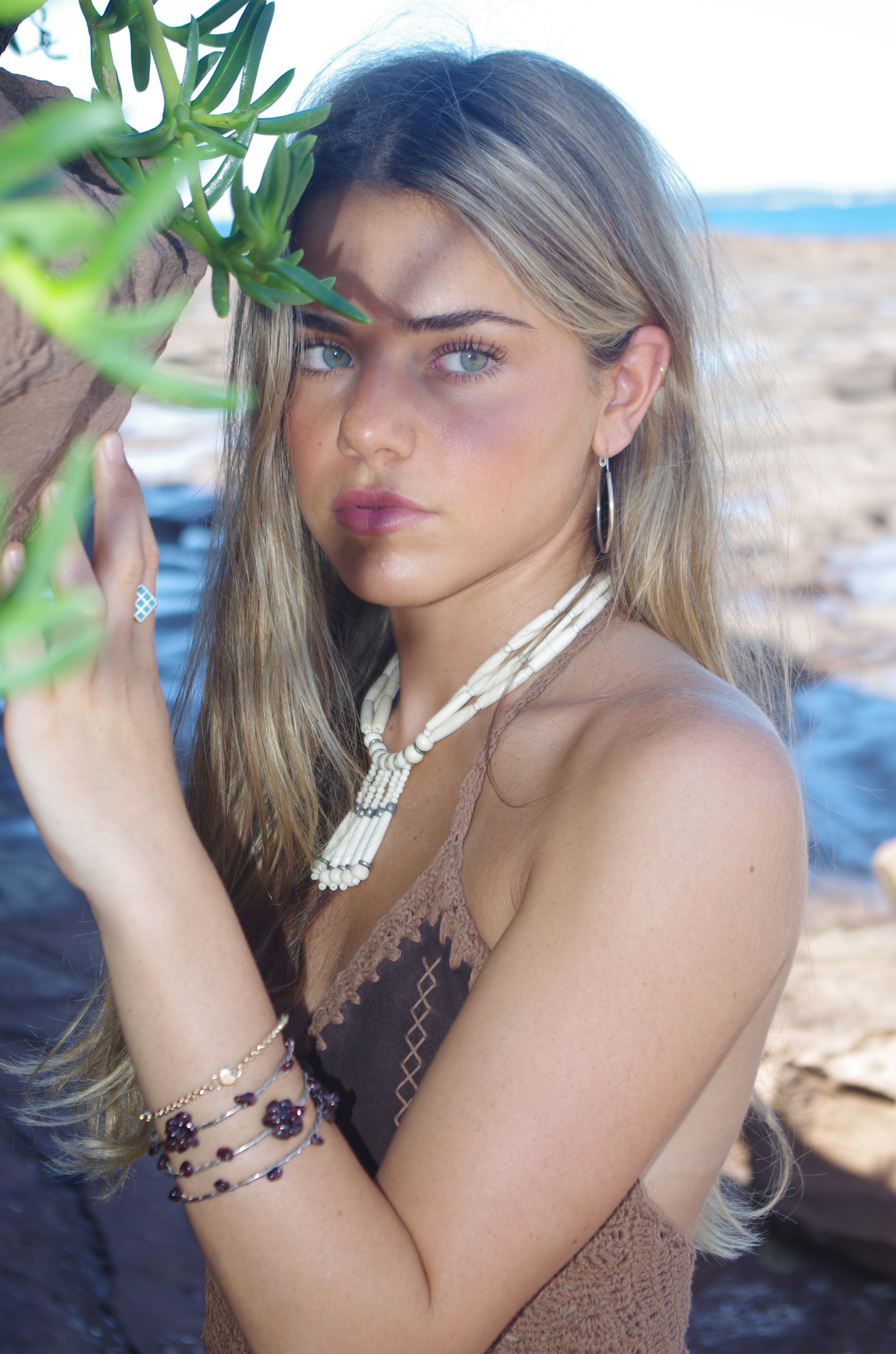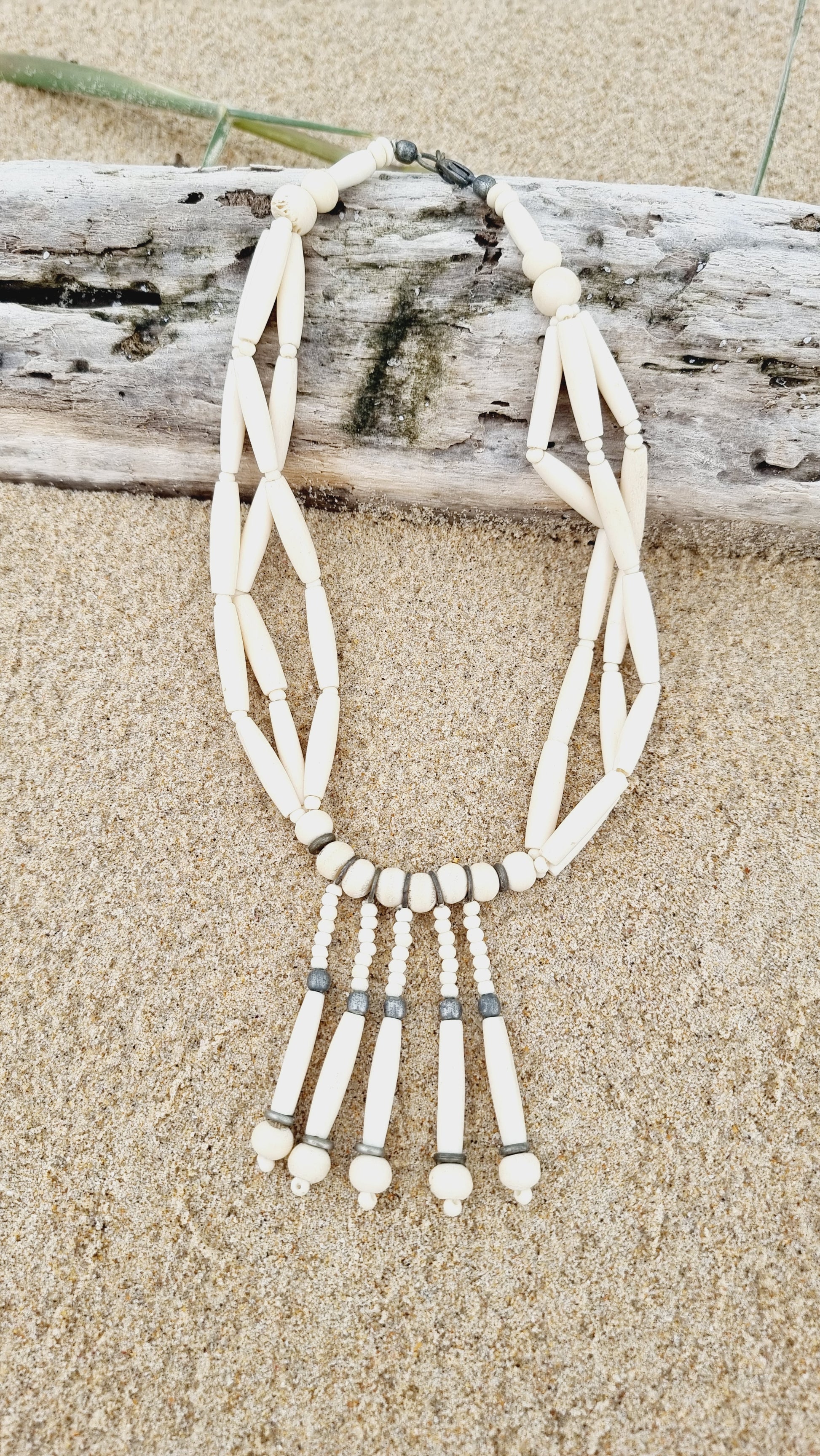 - Round and tube bead chain, with strong cotton thread and silver metal lobster clasp for closure.