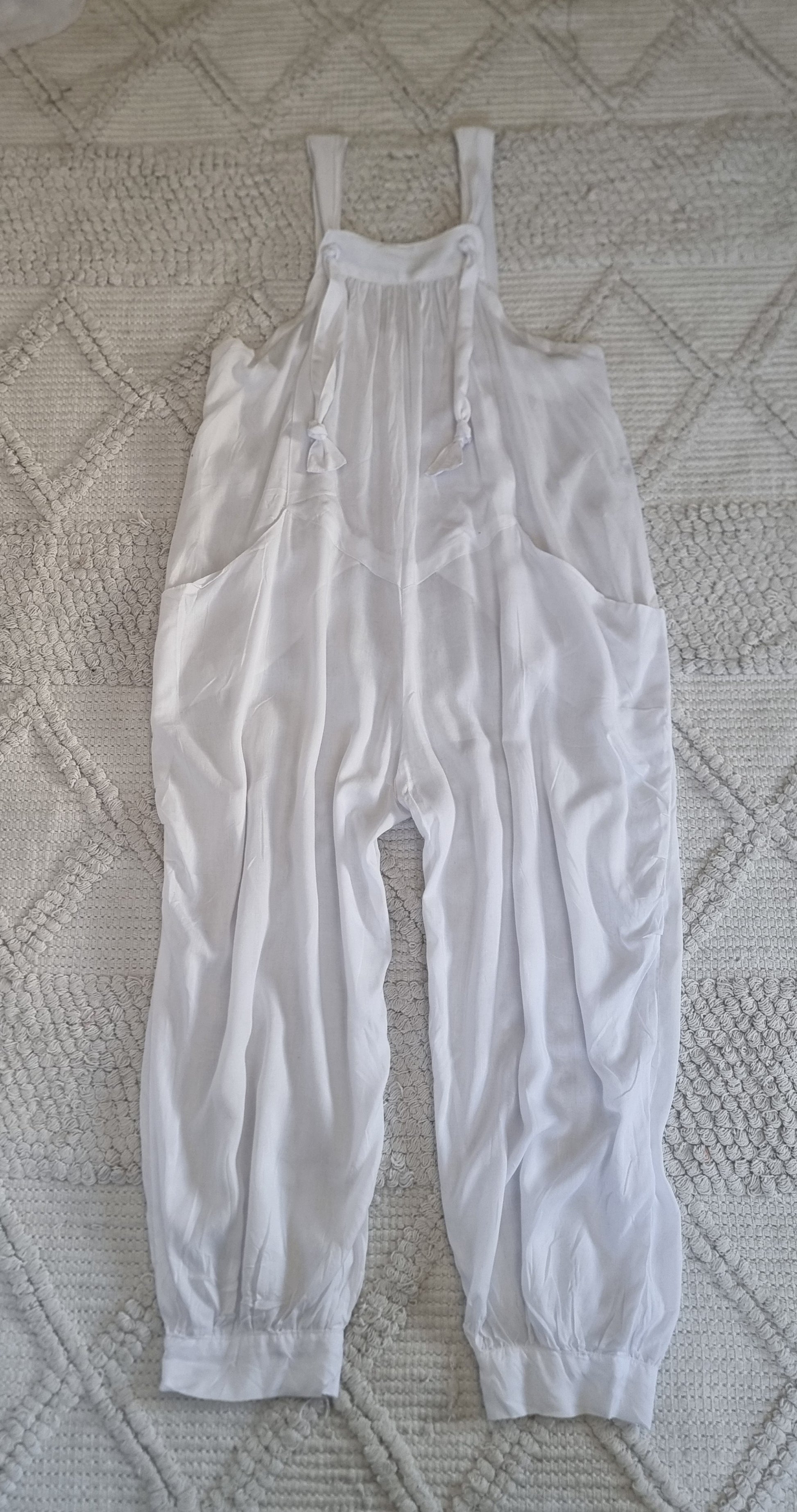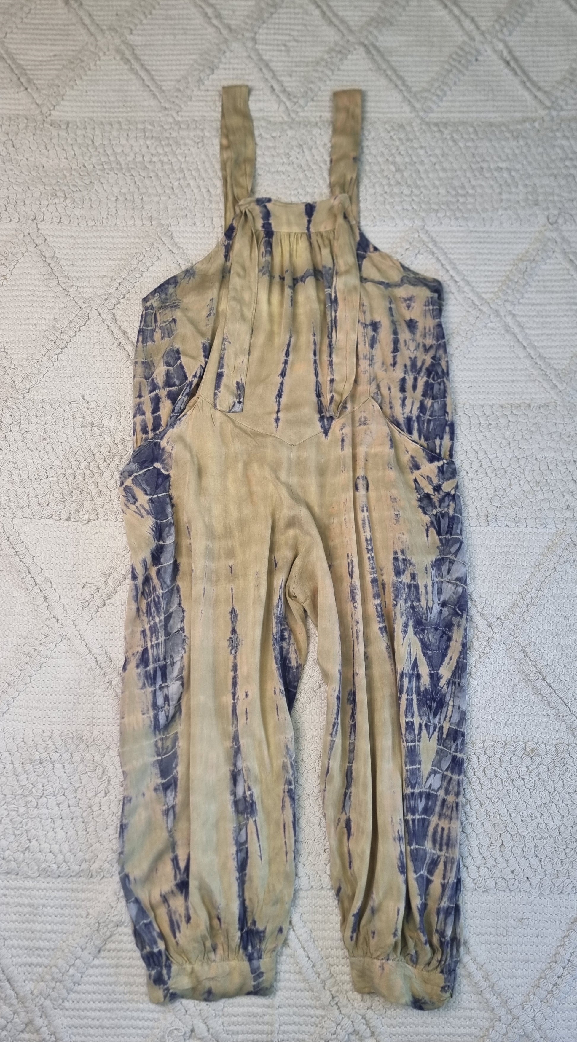Our Oversized Overalls are handmade in rayon material with 2 pockets and shoulder straps which can be adjusted to your required size. Knot the strap through the buttonhole and knot down the strap to give it your own unique look.