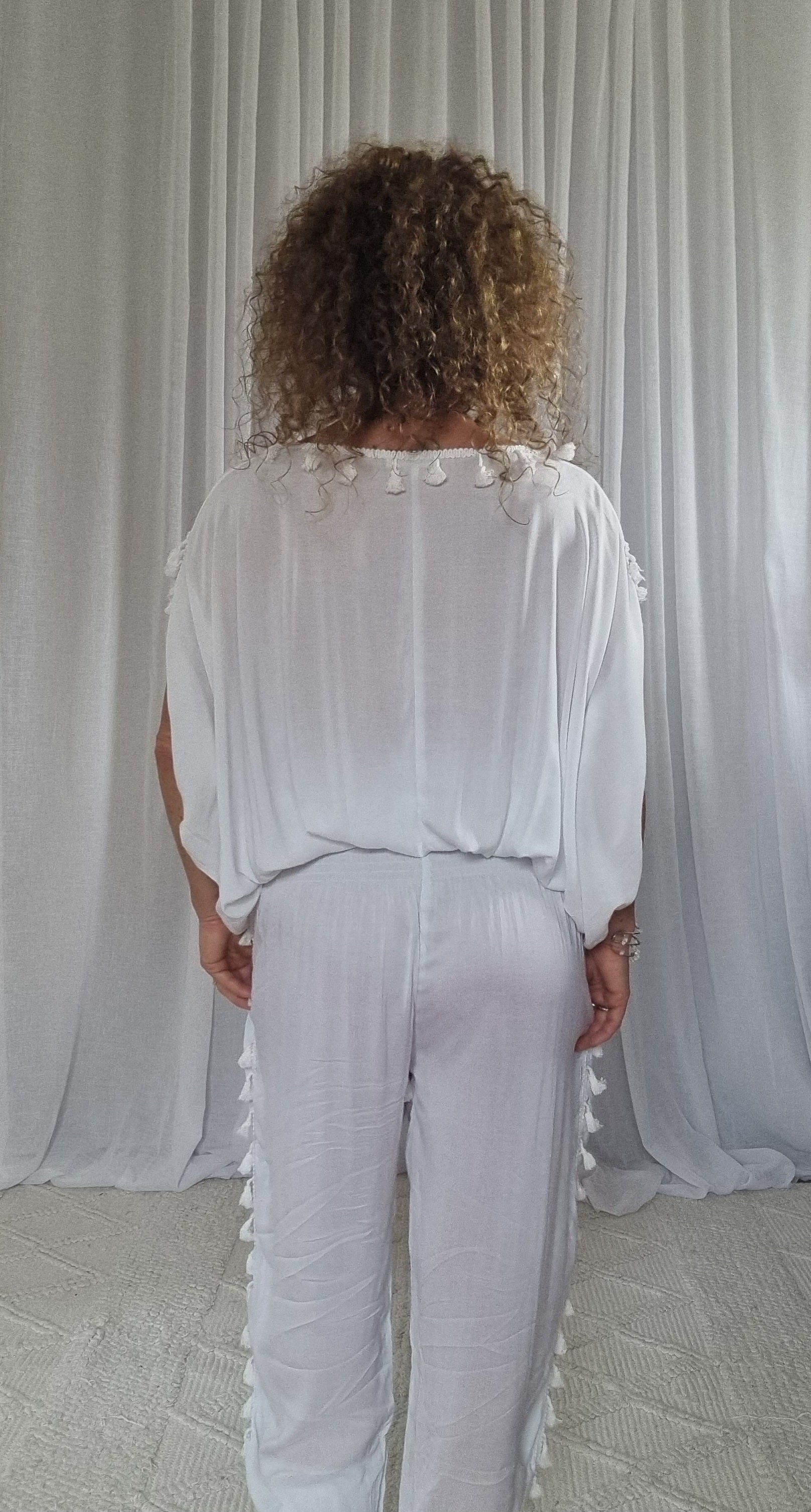 Ladies are you tired of feeling like nothing fits you anymore and most pants are too tight and uncomfortable around your tummy? Well, these sets are for you. The top and pants both have elastic waists and are oversized but look so stylish. They are breathable light and flowy, covering up any unwanted bumps. You can wear them casually or throw a pair of heels on to dress them up.