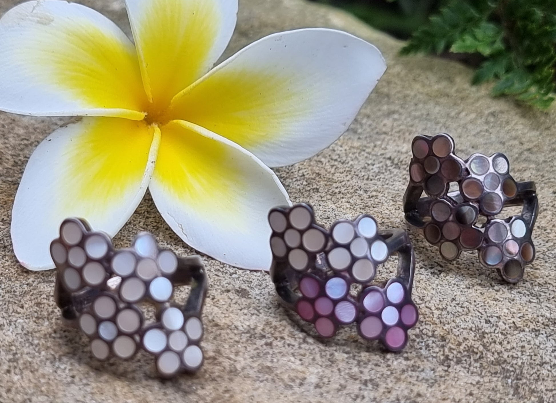 Sterling Silver Ring - stamped 925 - 2 colours - flower design.