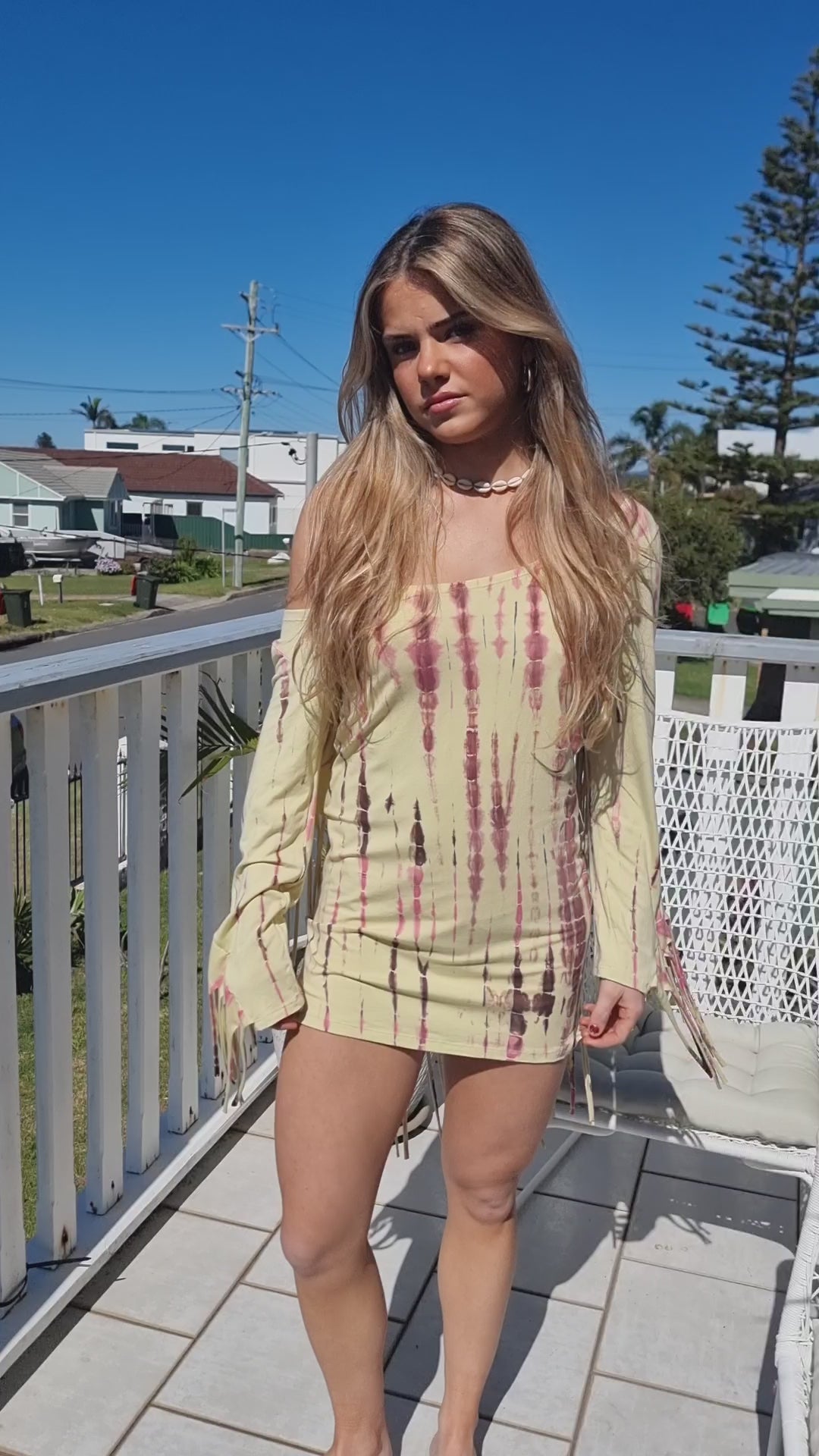 The Tie-Dye Indian Dress is 100% Rayon Spandex material, stretching out to fit size 6 to 12 girls/ladies.